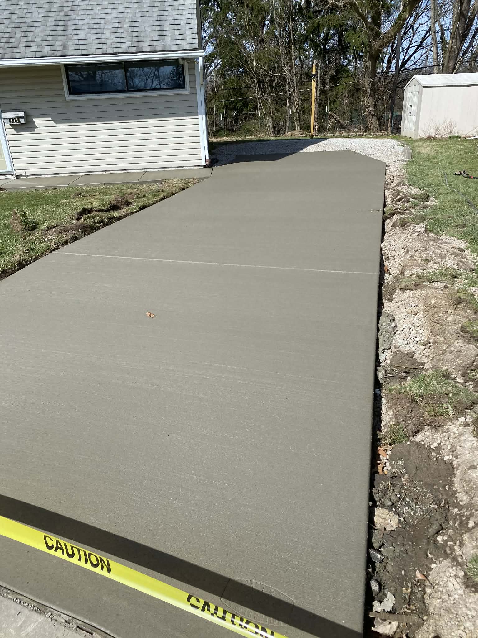 We contracted AJ&S to pour a driveway extension that led to a pad with space for a basketball hoop.